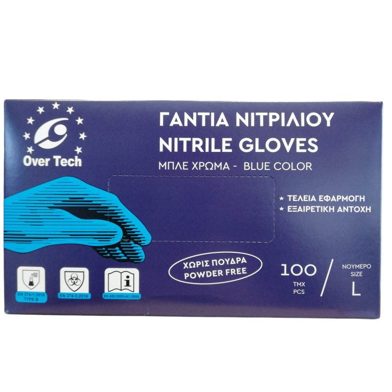 Γάντια νιτριλίου μπλέ χρώματος κατάλληλα για πολλαπλές χρήσεις.